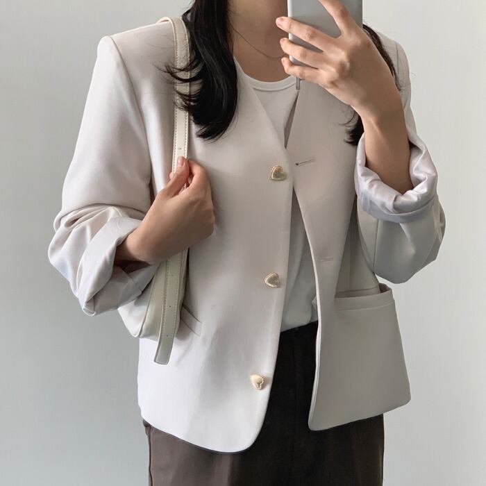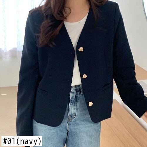 シンプルなVネックシックラブボタンゆったりダブルポケット長袖ブレザー春OLショートスーツトップコート ロング スプリング 春物