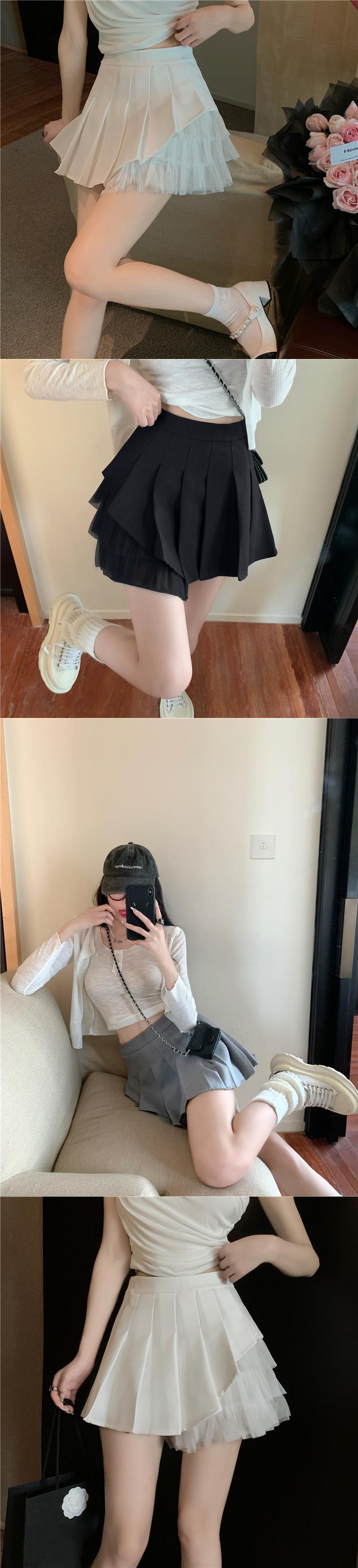 ミニ不規則なメッシュ白プリーツスカートセクシーな野生フリルスカート春 Y2k スタイル段 Faldas モーダ ホワイト スプリング 春物