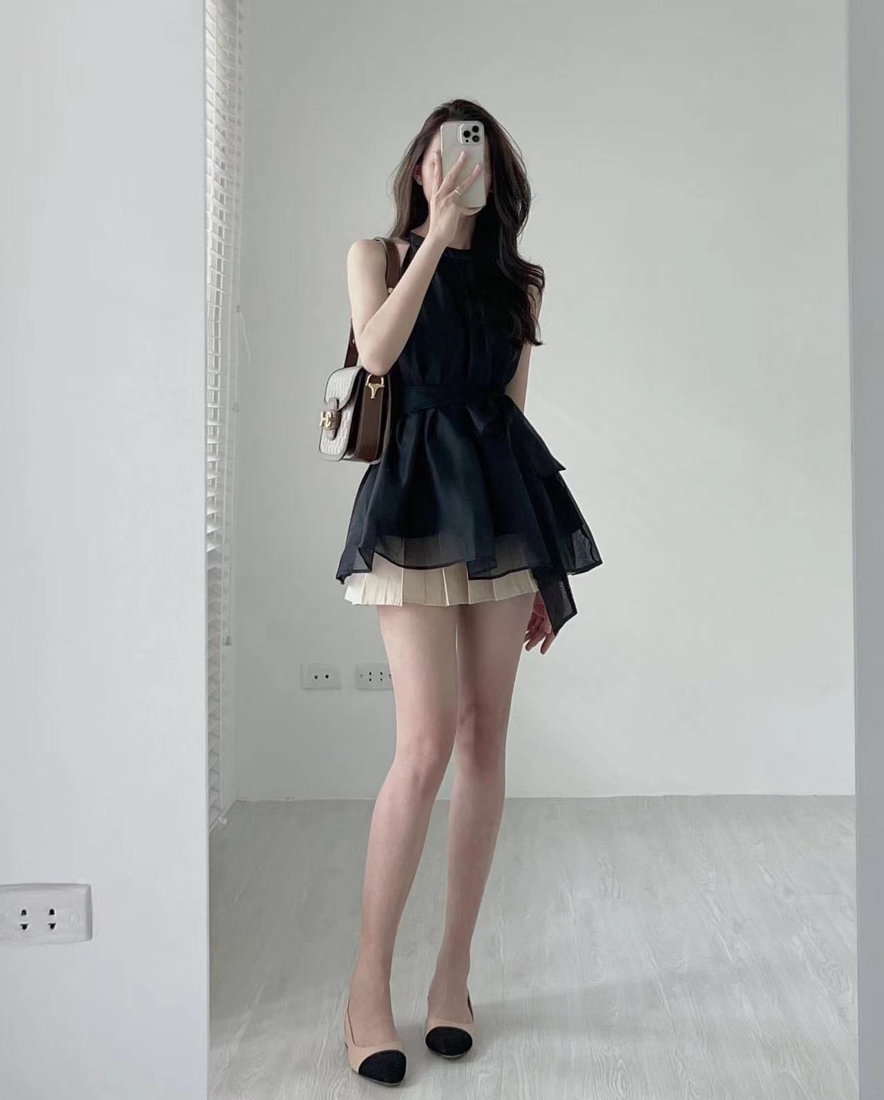 夏のブラウスワイルドレースアップホルターボウルーズノースリーブ白シフォンシャツトップス OL シャツ ホワイト リボン サマー 夏物