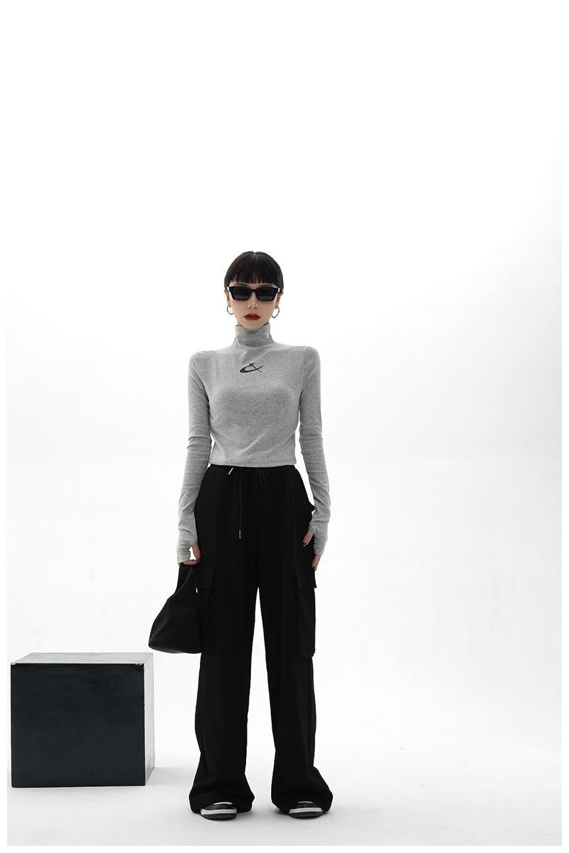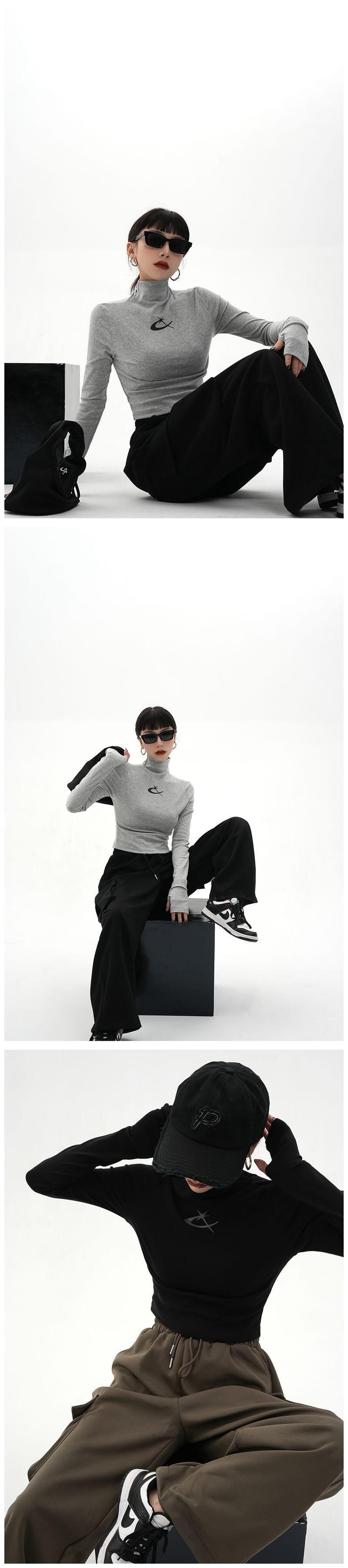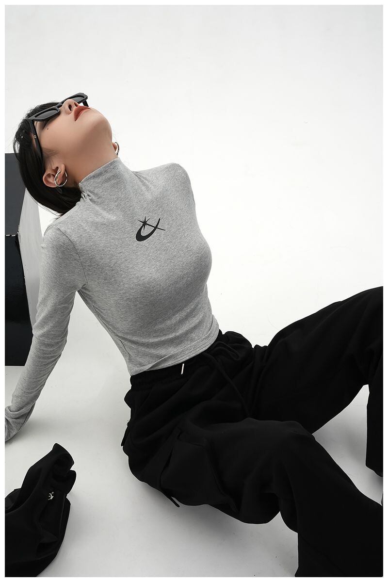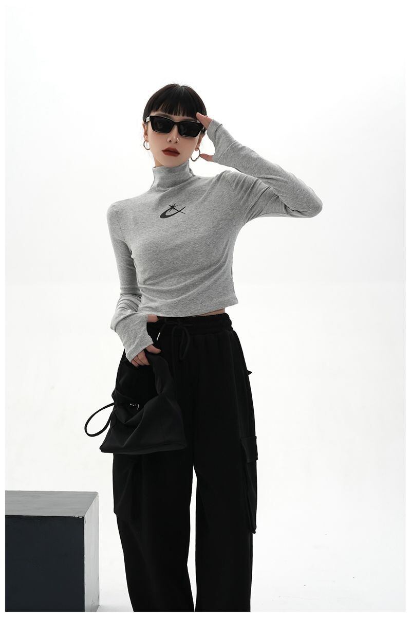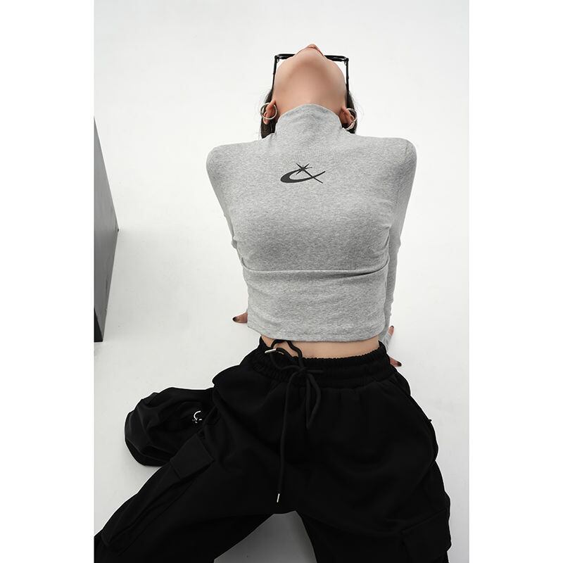 フリースハーフカラーグレープリント Tシャツ Tシャツスリムワイルドロングスリーブ Tシャツクロップトップス原宿グランジグラフィック Tシャツ 長袖 かわいい