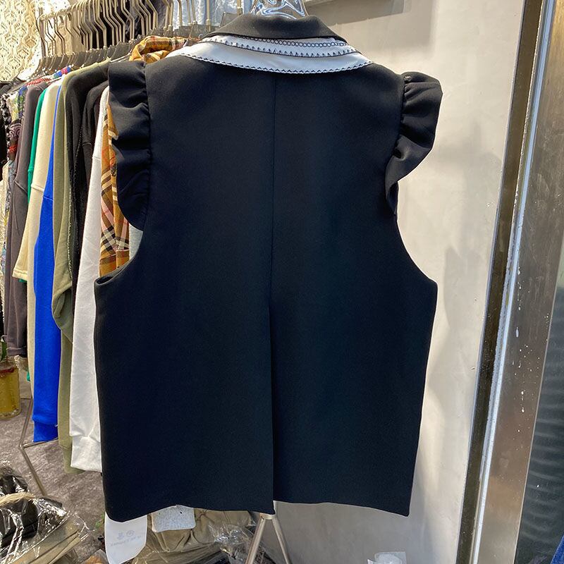 黒ブレザー Feminino ルーズノースリーブダブルブレストベストフライングスリーブチョッキ Chaleco ジャケットトップス ブラック