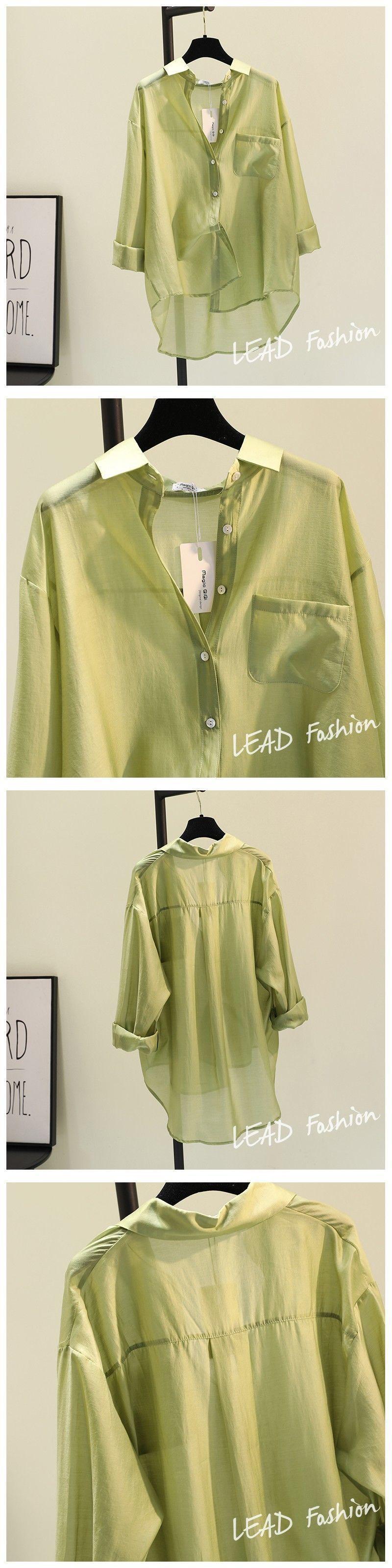 長袖ルーズトップ日焼け止めシャツ薄い不規則なブラウスワイルドスプリングシャツ ロング 春物 ソリッドカラー