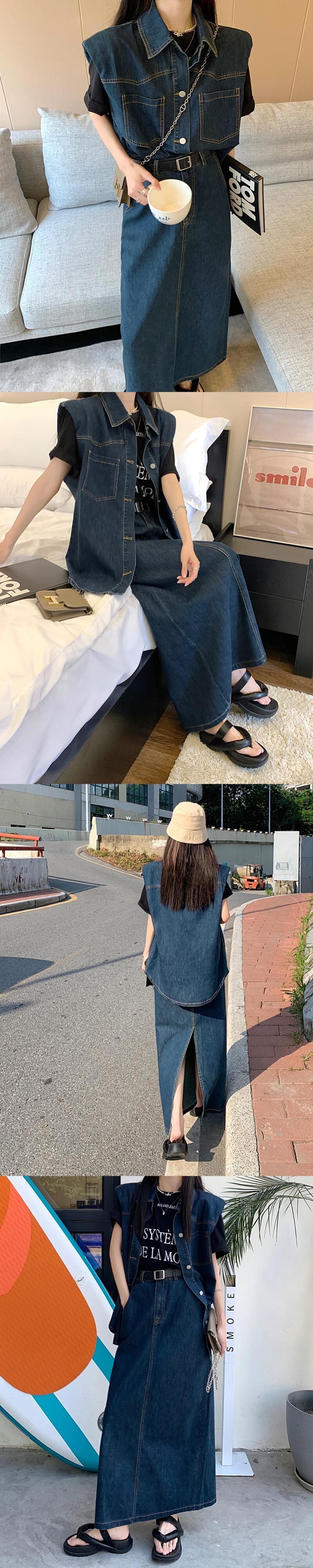 ノースリーブ ベスト デニム ジャケット シングル ブレスト チョッキ Y2k 春 a ライン ジーンズ スカート セット レディース 2 peice セットラペル スプリング 春物 Aライン