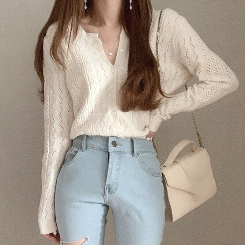 セーターデセーター長袖トップワイルドホワイトニットカーディガンコート春シックなクロップドカーディガン ロング スプリング 春物