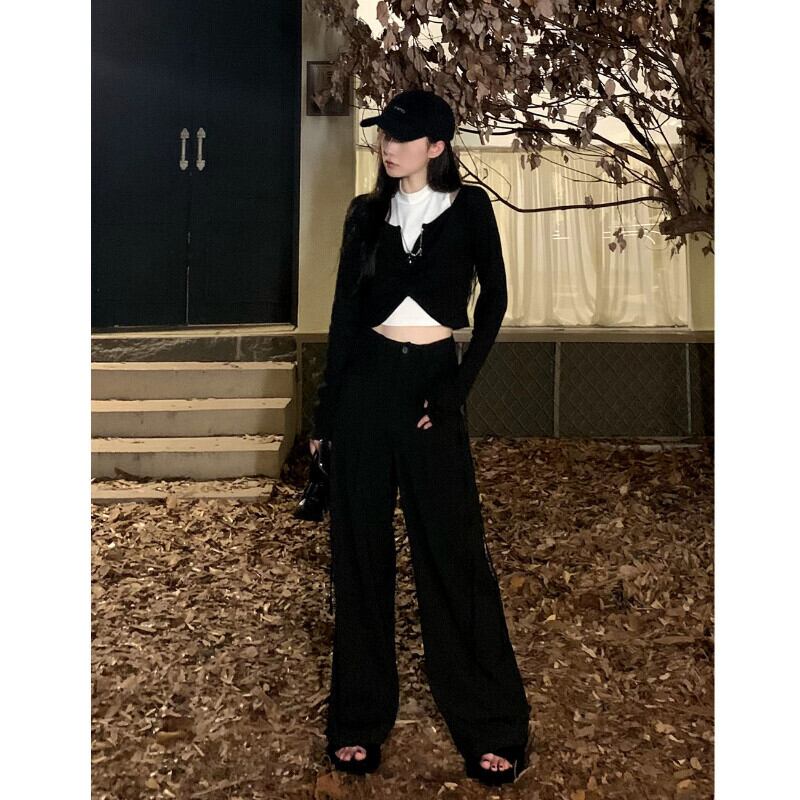 スリムセクシーなフェイク 2 美的 Tシャツグランジ Tシャツ春シャツグラフィック Tシャツ服黒チェーン Tシャツ ブラック スプリング 春物