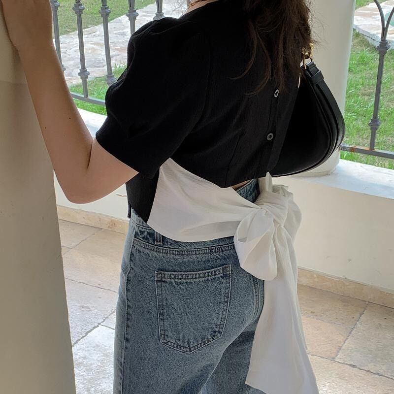バック弓半袖 Tシャツ特大クロップトップスセクシーな V ネックスリム Tシャツ Tシャツ服シンプル ショート リボン ハーフスリーブ Vネック