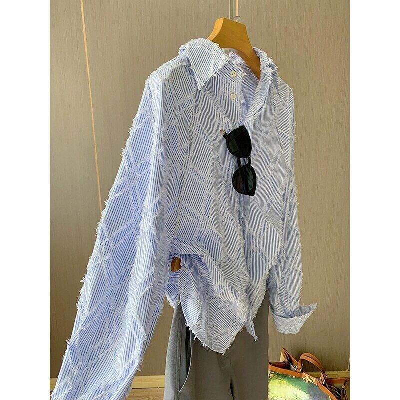 シャツ レディース ラグランスリーブ シャツ ルーズ Blusa ブルー アーガイル ブラウス Tels ストライプ シャツ