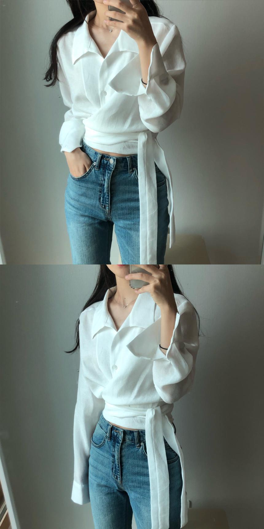 s OL ブラウス クロスウエスト バンデージ シングルブレスト 長袖 白シャツ レディース ワンピース トップス ロング ホワイト