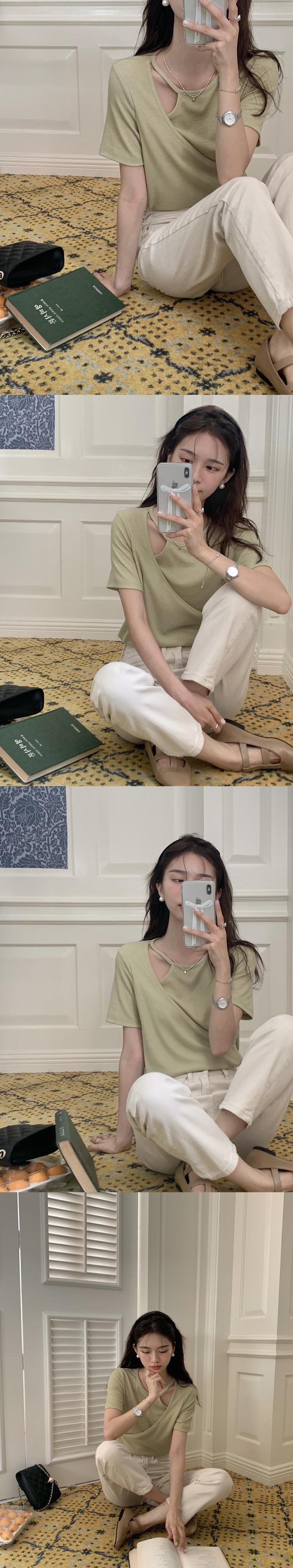 ソリッドコットン Tシャツワイルドサマートップス Y2k O ネック不規則中空アウトオフショルダーワンボタン半袖 Tシャツ ショート ハーフスリーブ 夏物 Oネック ソリッドカラー