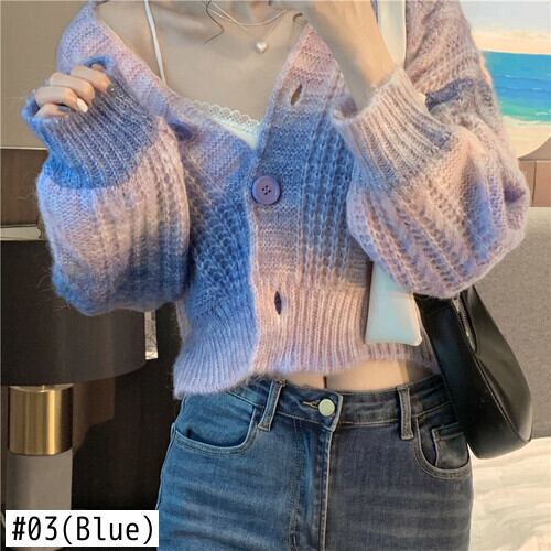 クロップドカーディガンレインボーセーター春セクシー Y2k レトロ生き抜く V ネックニットセータートップスコートセーター スプリング 春物 Vネック