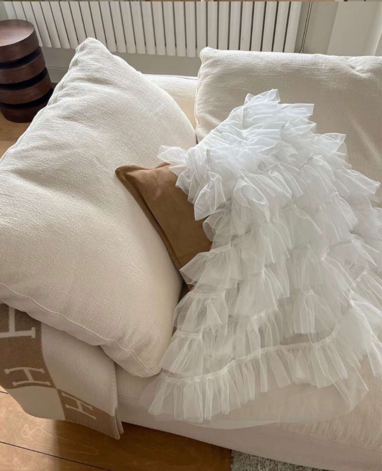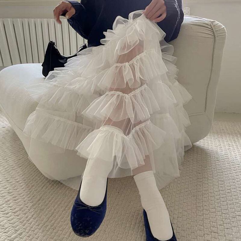 ロング ホワイト オーガンジースカート フリル スプリングウエスト モーダ透視 メッシュ ファルダス ラルガス レディース ラッフル 春物