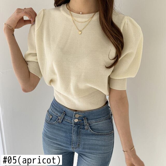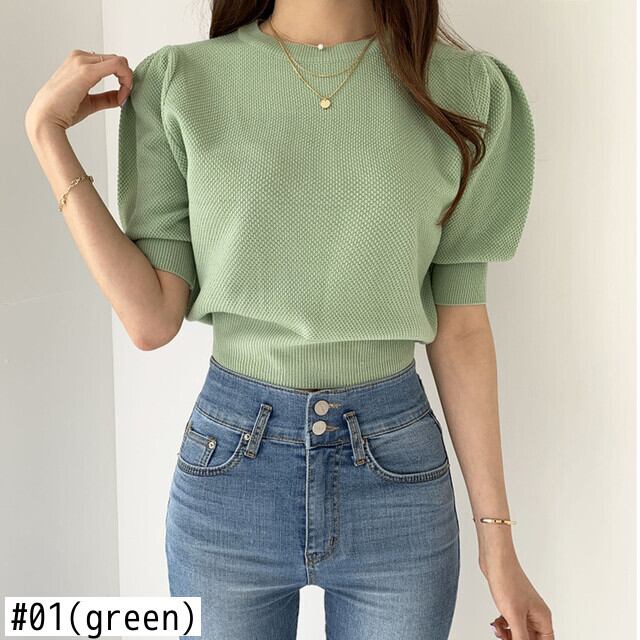 シャツキャンディーカラーセーター O ネックパフ半袖ブラウスジャンパーニットトップスジャージークロップ黒 Tシャツ ショート ブラック ハーフスリーブ Oネック
