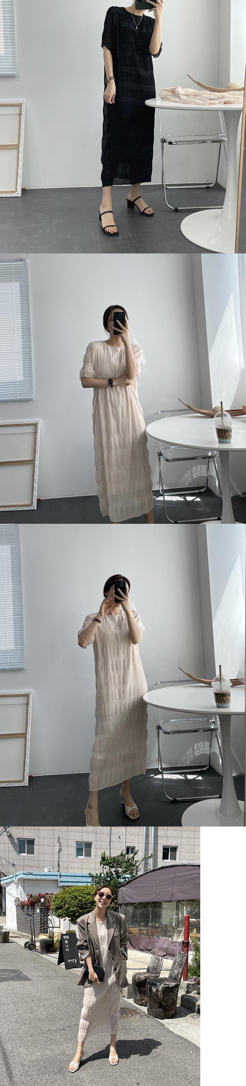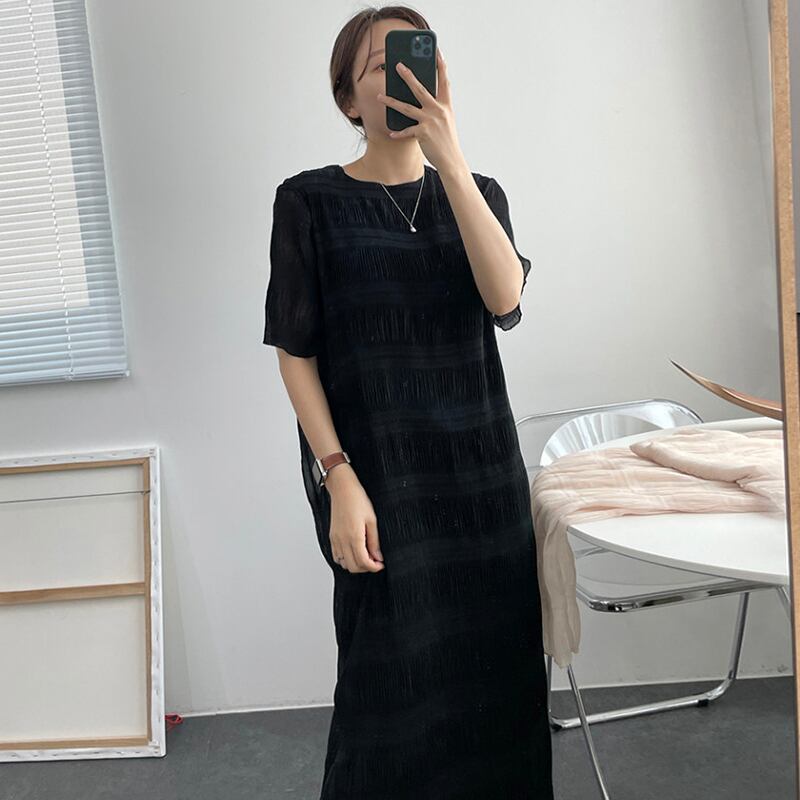 Vestidos デ半袖ドレスマキシ緩い O ネックシフォンドレスしわ野生春服 ショート ハーフスリーブ スプリング 春物 Oネック