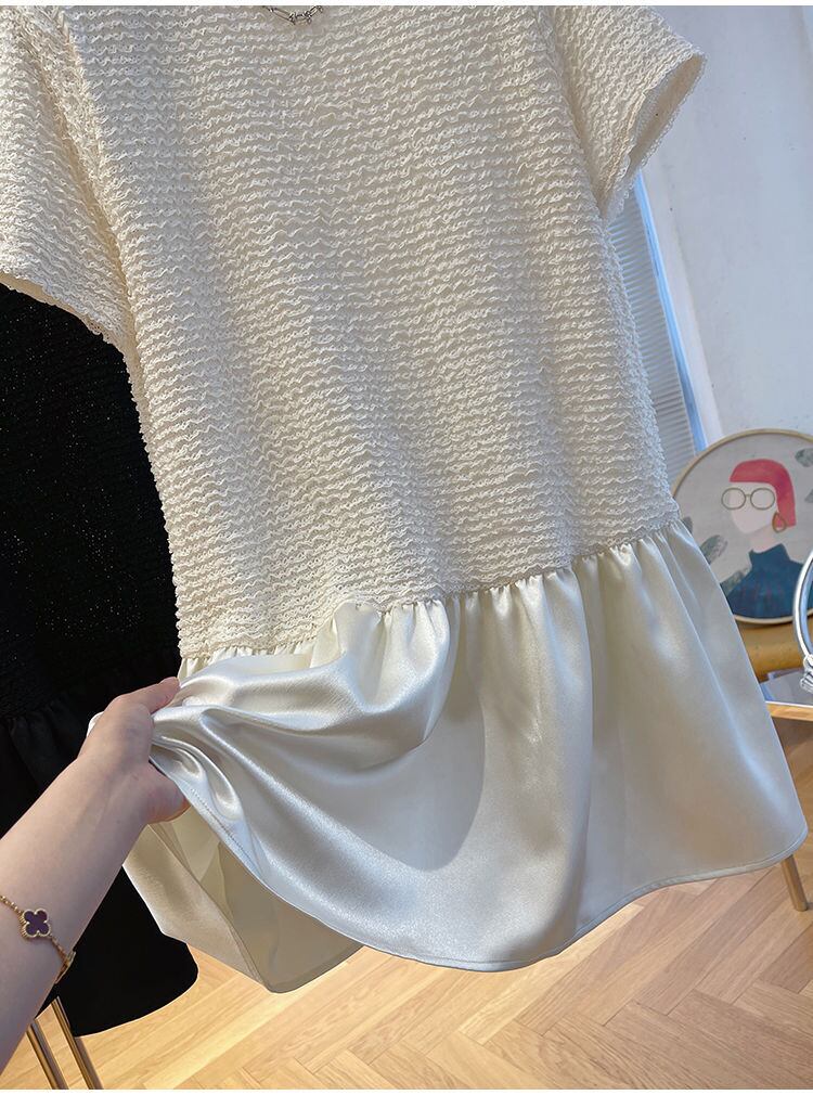 ルーズブラックプリーツドレス半袖フィッシュテールパッチワークOネックマーメイドドレスVestido Feminino Maxi ショート ハーフスリーブ