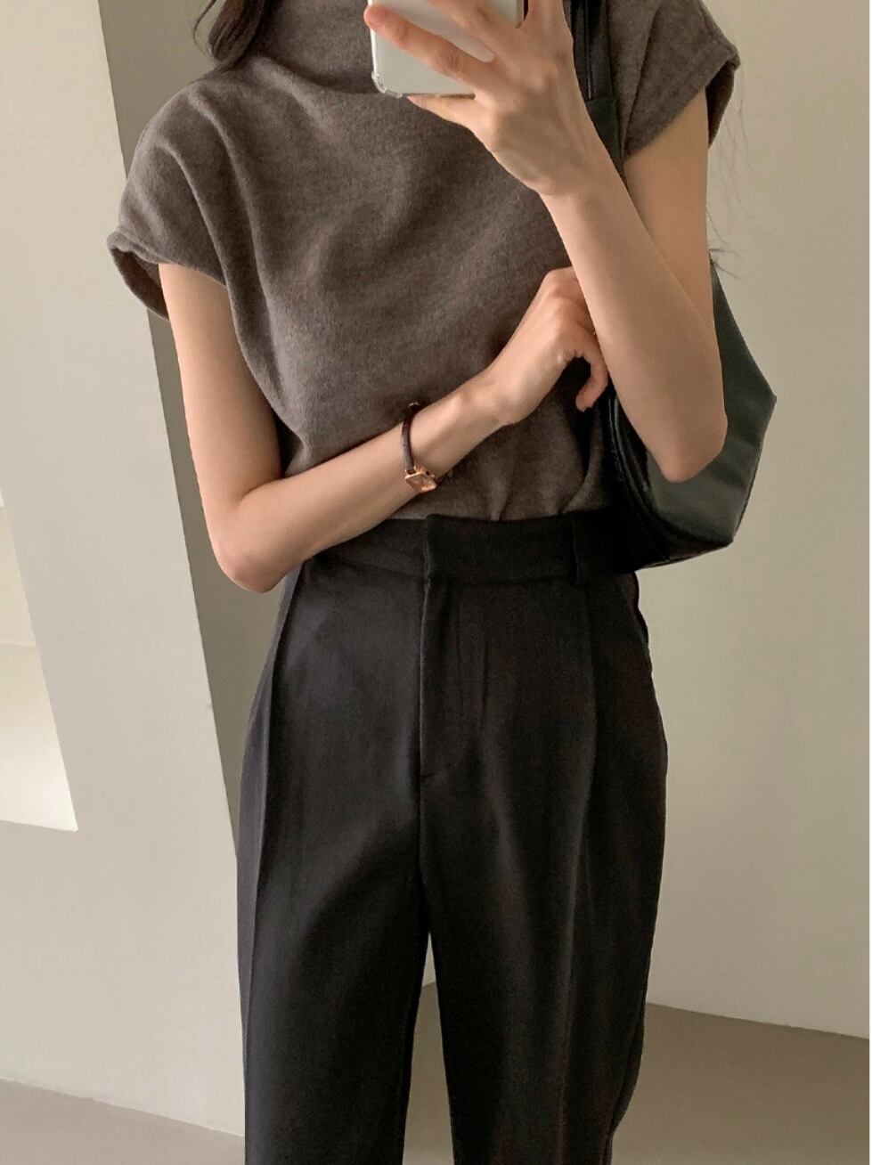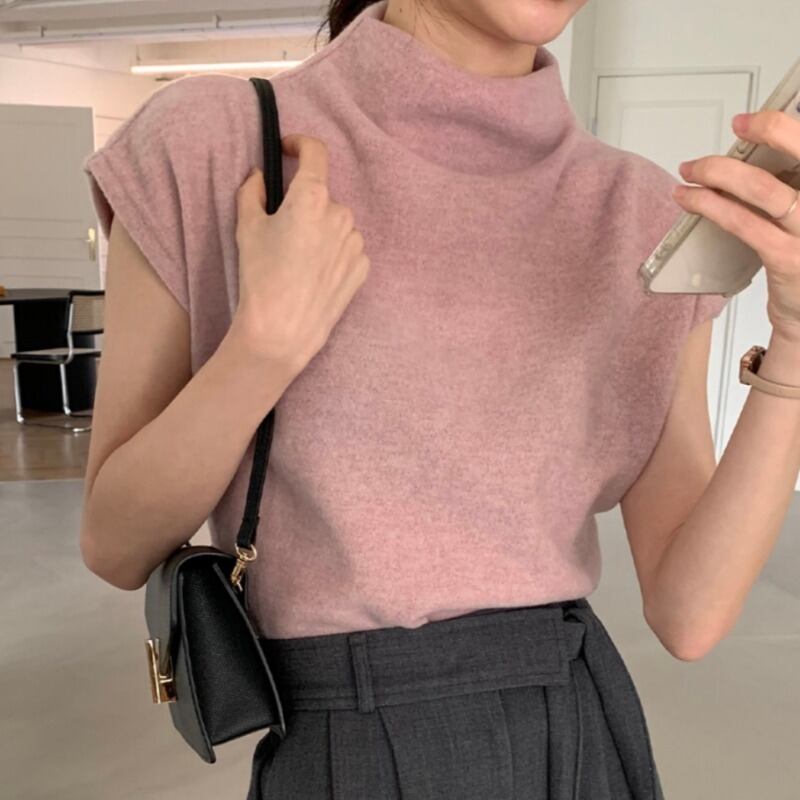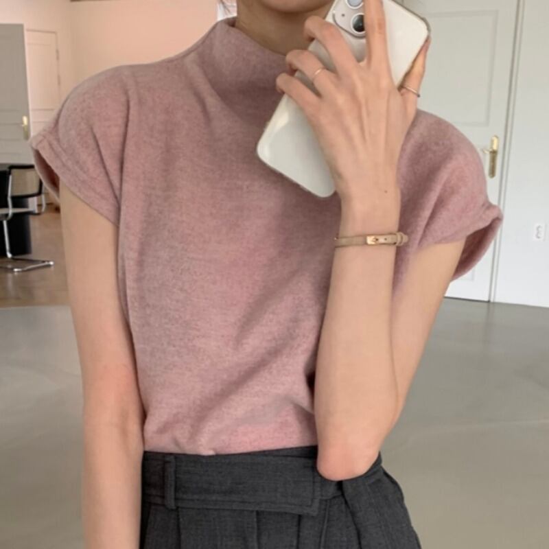 シャツソリッドハーフカラー半袖 Tシャツ野生シンプルピンク Tシャツ春クロップトップススリム Tシャツ ショート ハーフスリーブ スプリング 春物 ソリッドカラー