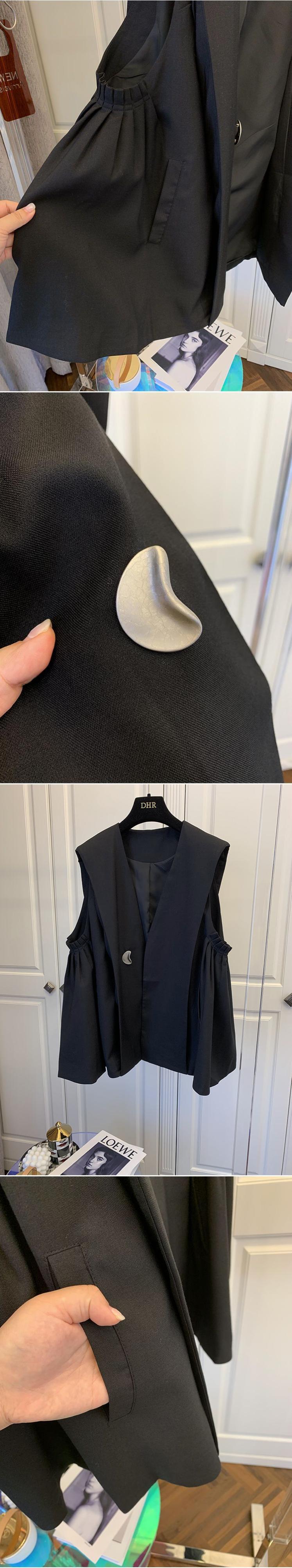 Chaleco 黒チョッキテーラードコート Colete Feminino ベスト春ブレザープリーツジャケット レッド ブラック スプリング 春物