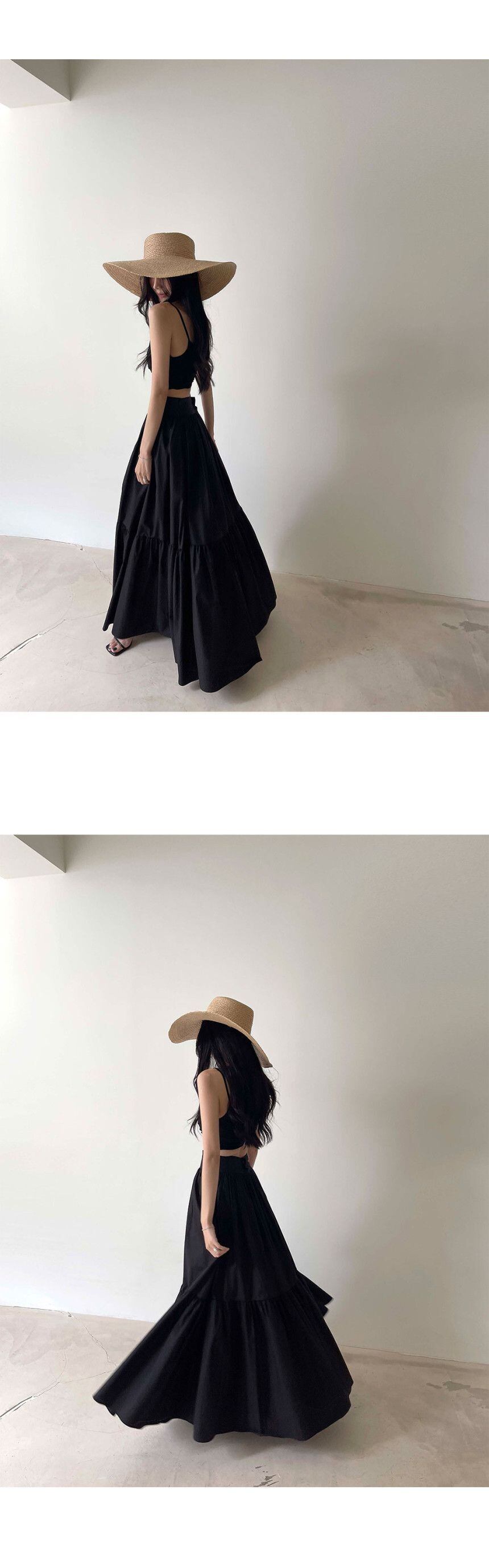 タンクトップキャミソールセクシーブラウスシャツ夏スイングウエスト A ラインスカート黒ツーピースセットレディース衣装プリーツ ブラック サマー 夏物 Aライン
