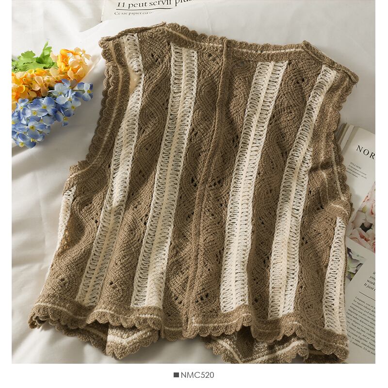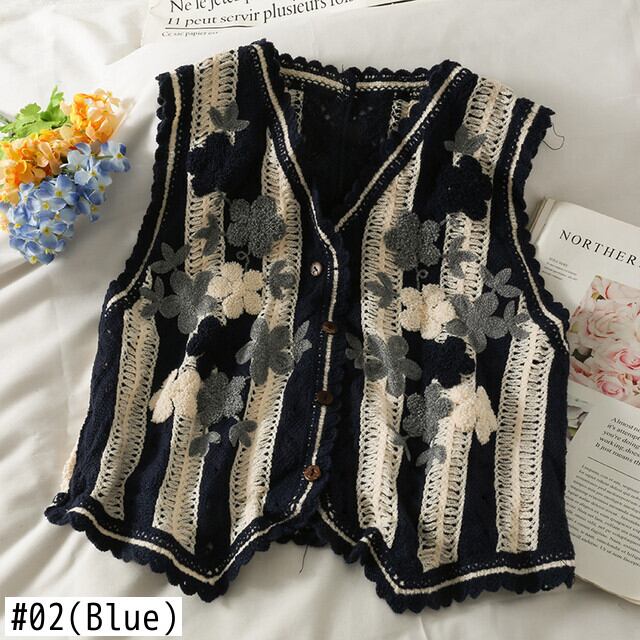 V刺繍フラワーニットベスト カットアウト スリム ノースリーブ トップス Colete Feminino シングルブレスト セーターベスト Chaleco フラワーデザイン