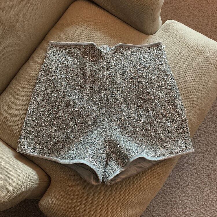 ショーツセクシーウエストシルバースパンコールショート Y2k ストレートワイドレッグカーゴ Pantalones Cortos デ ブルマー ワイドパンツ 銀