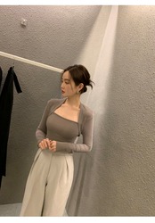 シャツセータージャージージャンパーセクシー黒ニットセータープルオーバートップスクエアカラーセータープル ブラック スクウェア