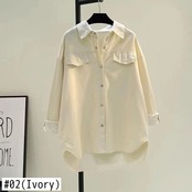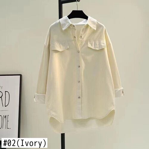 De Moda ルーズ ダブルポケット グリーン コーデュロイ シャツ スプリング トップ ワイルド ブラウス 無地 シャツ レディース 春物 ソリッドカラー