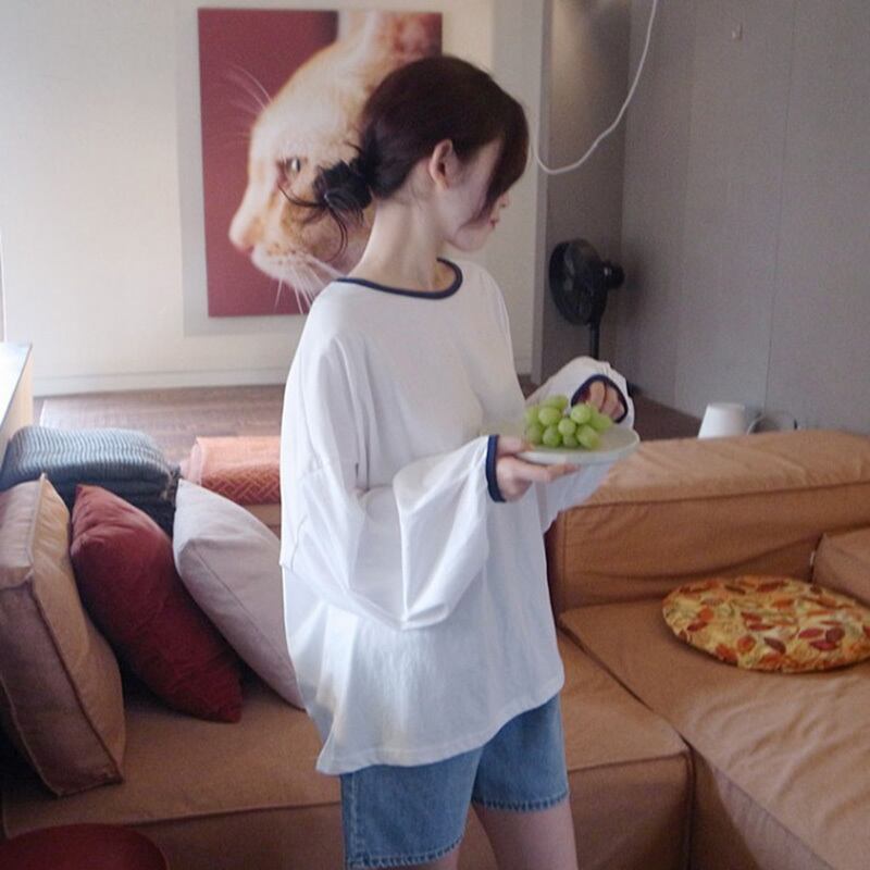 スタイル トップス フレッシュ シンプル ルーズ コントラスト カラー ロングスリーブ Tシャツ ルーズ レディース 春 Tシャツ ワイルド Tシャツ 長袖 スプリング 春物