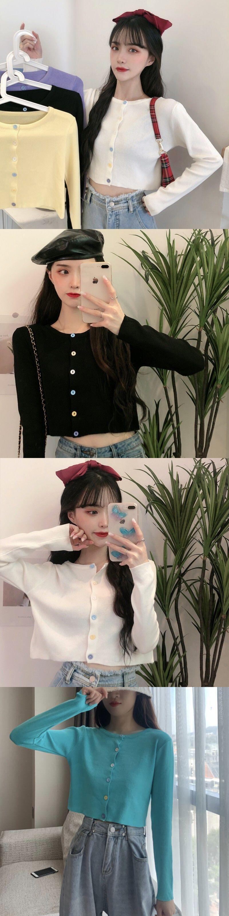 セーター無地クロップドカーディガン Feminino 甘い色ボタンニットセーター春 V ネックセーター レッド 大人ガーリー スウィート キュート カジュアル スプリング 春物 Vネック ソリッドカラー