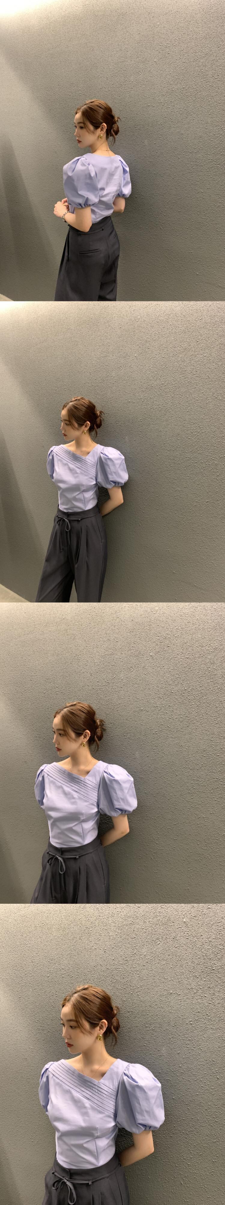 斜め襟プリーツシャツフレンチガールトップスデパフ半袖ブラウス白人形シャツ ショート ホワイト ハーフスリーブ