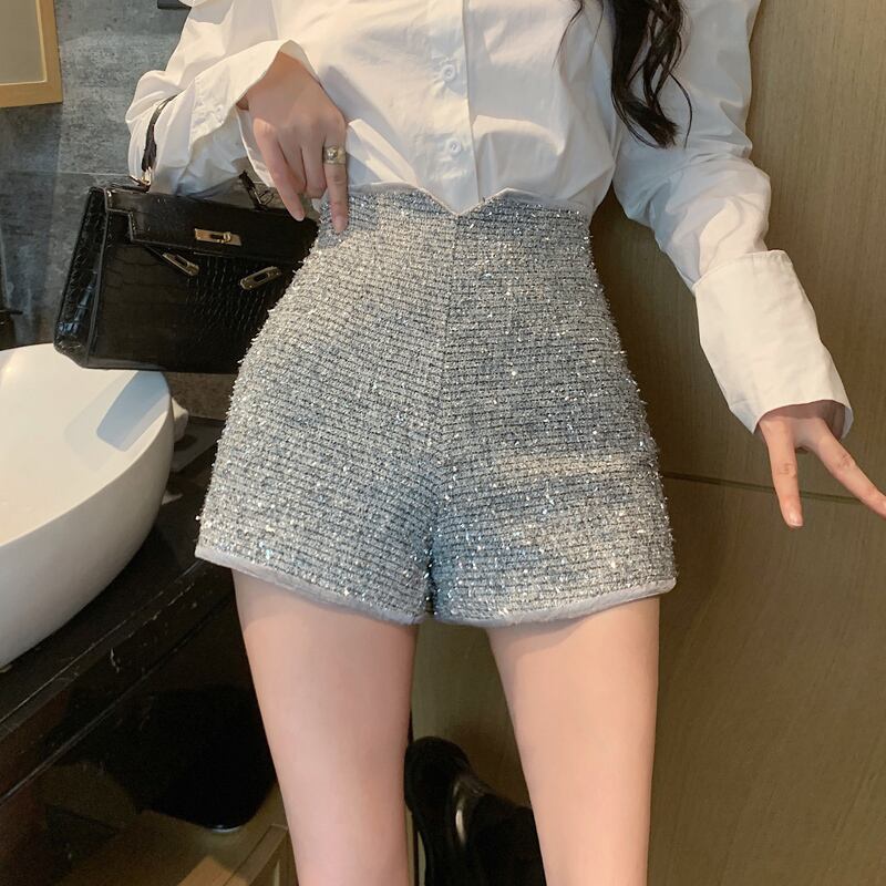 ホットミニシルバースパンコールスカートウエストショーツ Feminino Pantalones Cortos De Y2k ストリートセクシー ブルマー 銀