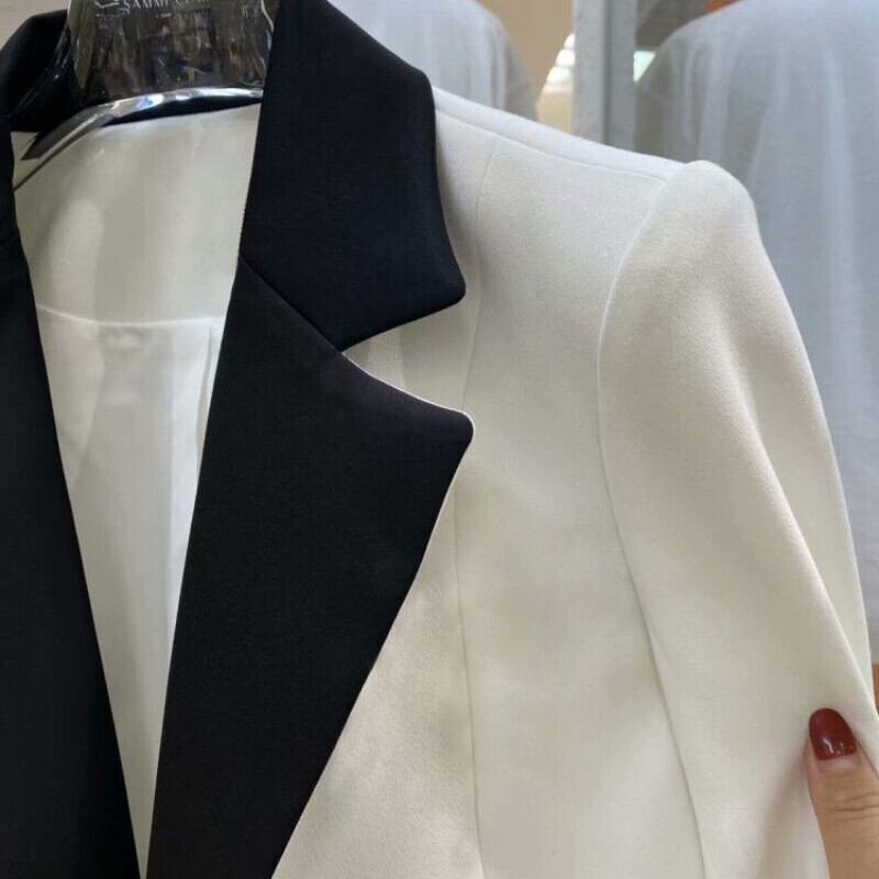 ショート テーラードコート コントラストカラー ノッチドダブルブレスト ブレザー フェミニノ ウエスト ジャケータ スリムブレザー レッド