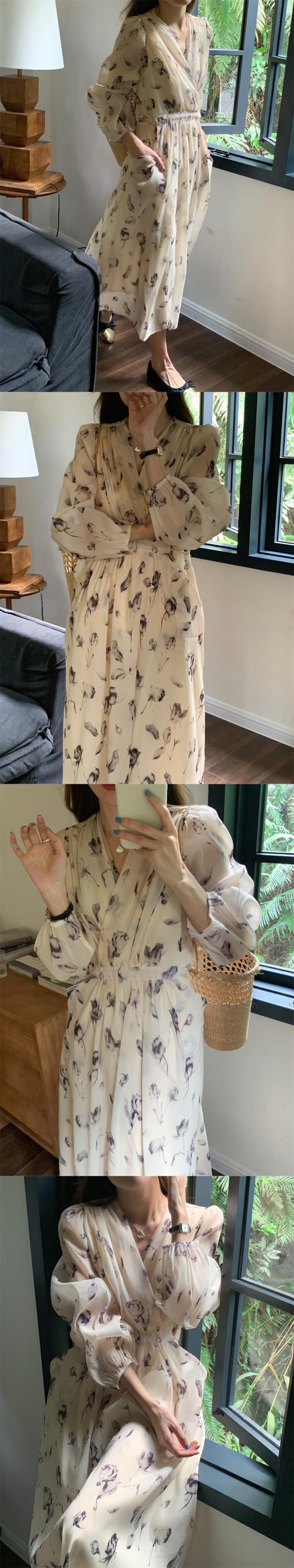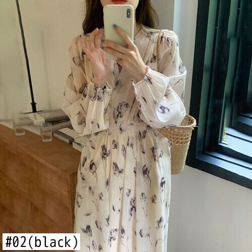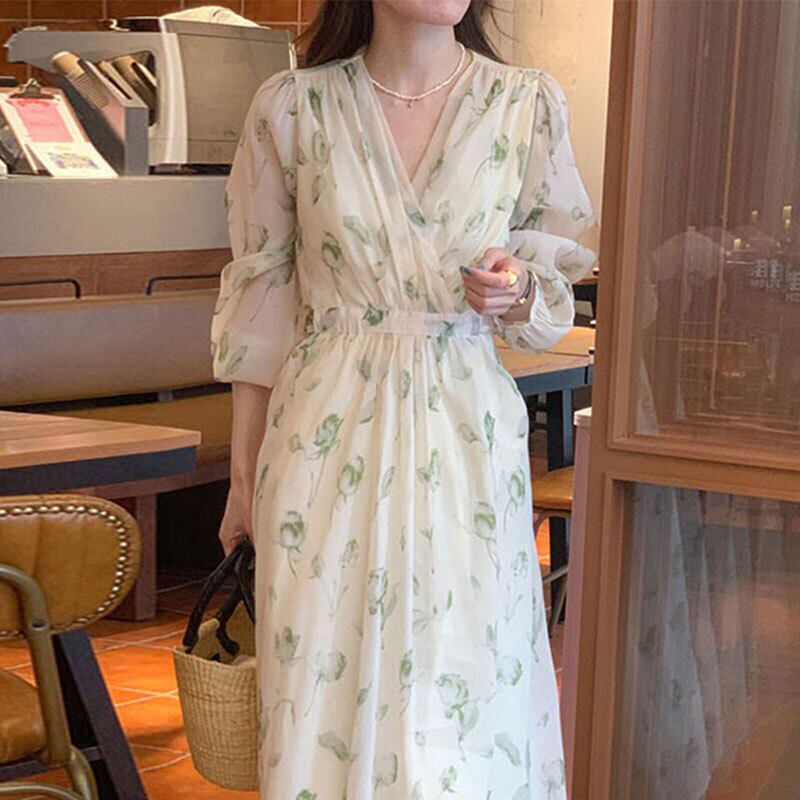 Vestidos De es 春 フレンチクロス Vネック 花柄 プリント ウエスト 長袖 シフォンドレス ローブ パーティードレス ロング スプリング 春物