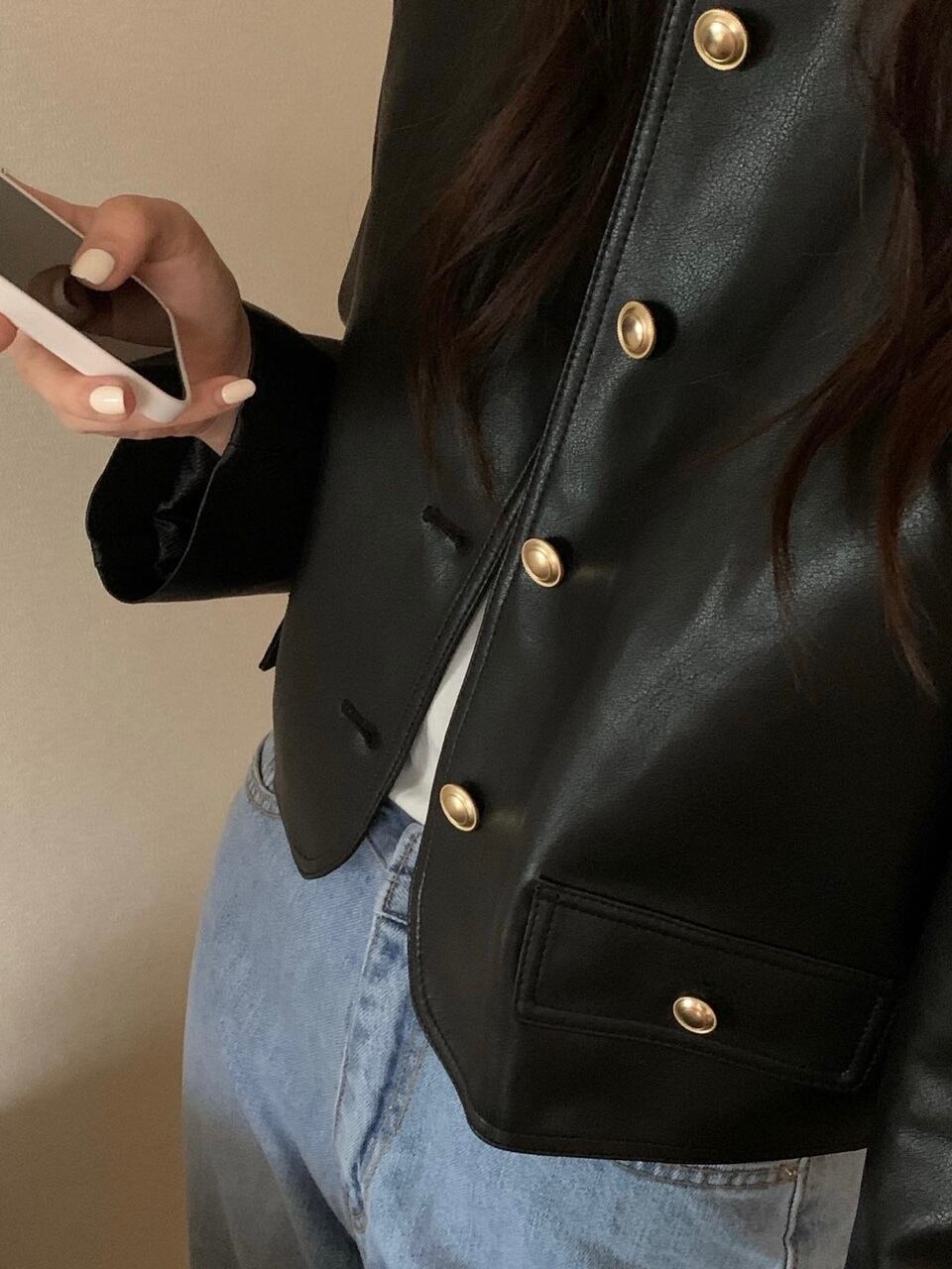 黒革ジャケット Pu ストリート Chaqueta Jaqueta O ネックメタルシングルブレストルーズスリーブショートレザージャケットコート ブラック Oネック