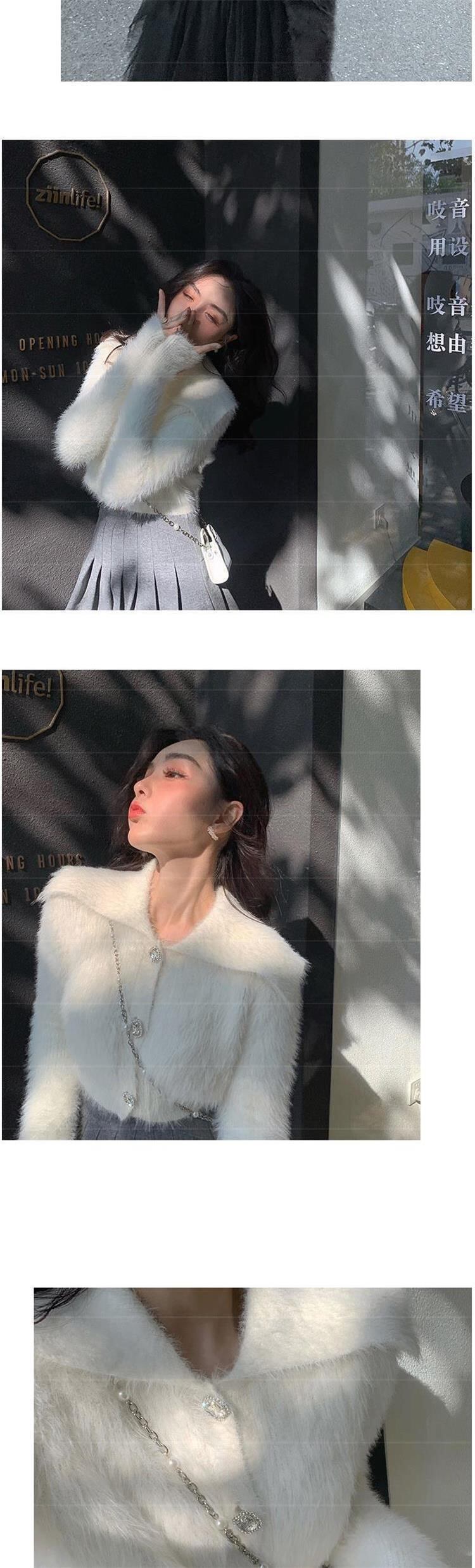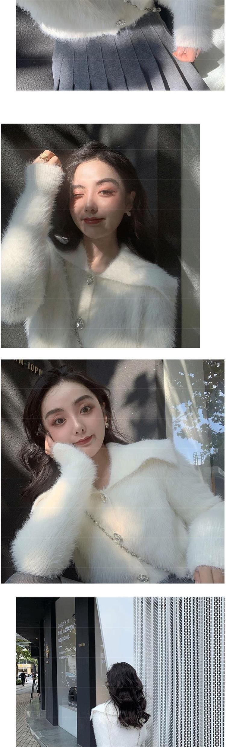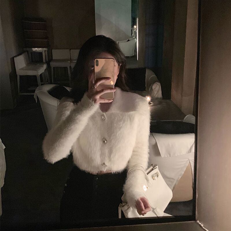 ミンクカシミヤホワイトモヘアセーターラペルクロップドカーディガンニットカーディガンセーターピンクカーディガンジャケットシックボタン