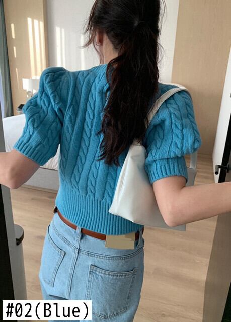 気質 O ネック ホワイト ツイスト ニット セーター トップ 春 無地 セーター プルオーバー 半袖 ジャンパー クロップ セーター レディース ショート ハーフスリーブ スプリング 春物 Oネック ソリッドカラー