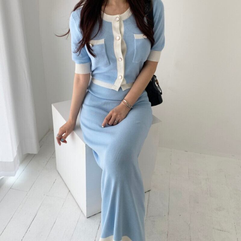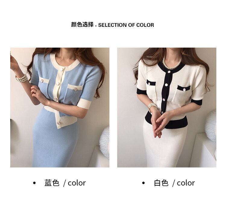 ニット半袖クロップドピンクカーディガンボディコンスカートレディースツーピースセット春セータースリムオフィスレディドレスセット ショート ハーフスリーブ スプリング 春物 会社 学校 通勤や通学にも