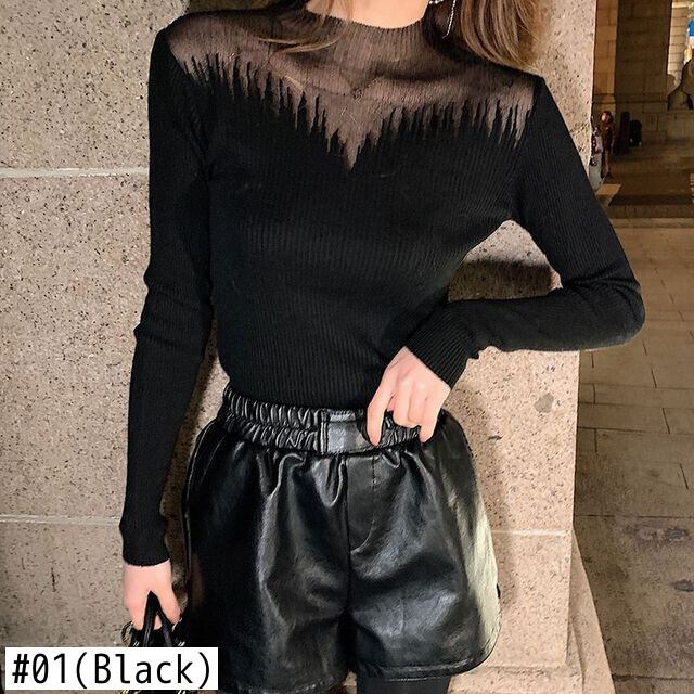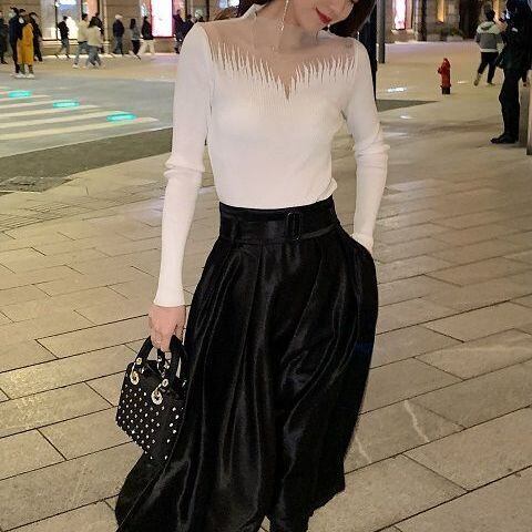 ニットセーター レディース 中空アウト ハーフモックネック 長袖 ニット 無地 ベーシック スリム プルオーバー メッシュ ロング ソリッドカラー