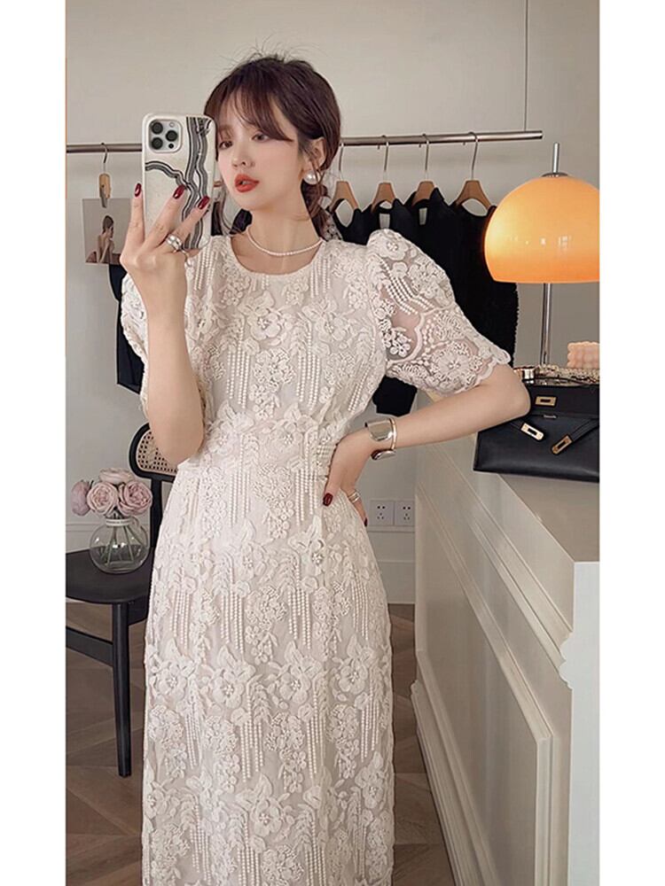 スリム A ライン気質かぎ針編みボディコン刺繍ホワイト レース ドレス夏 Vestidos パーティー弓半袖 ショート レッド リボン ハーフスリーブ サマー 夏物 Aライン