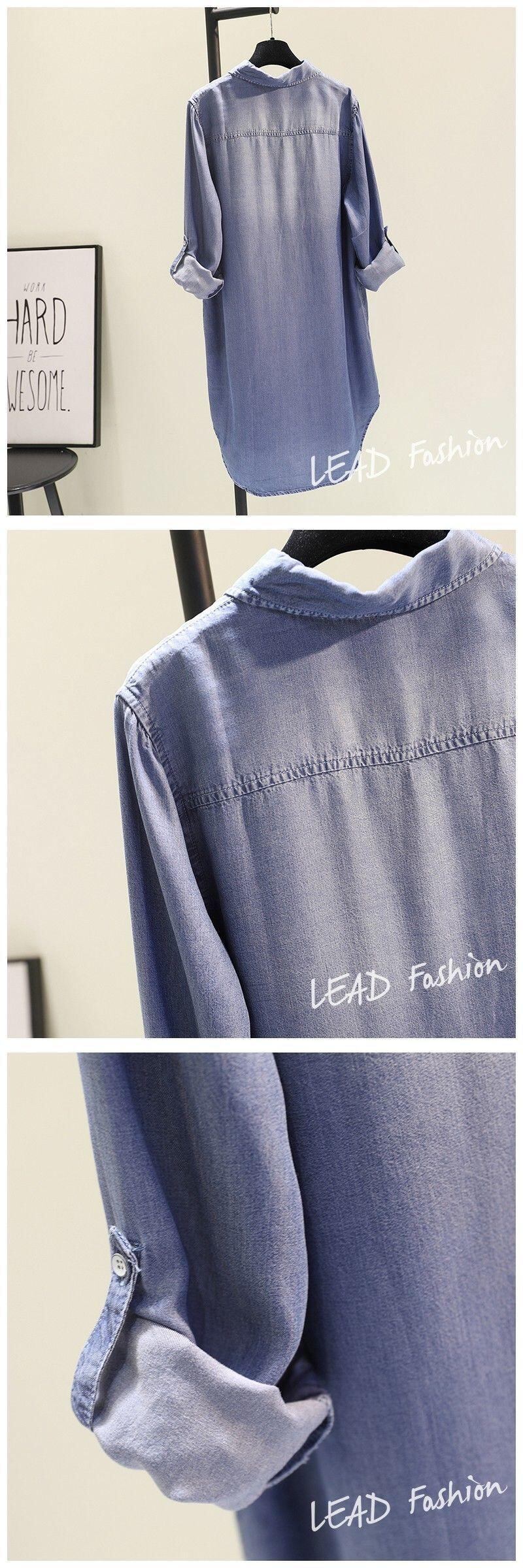 春ダブル ポケット ミディ コットン ホワイト デニム シャツ ドレス春野生 Vestido Feminino ルーズ スプリング 春物