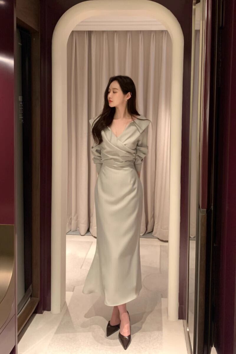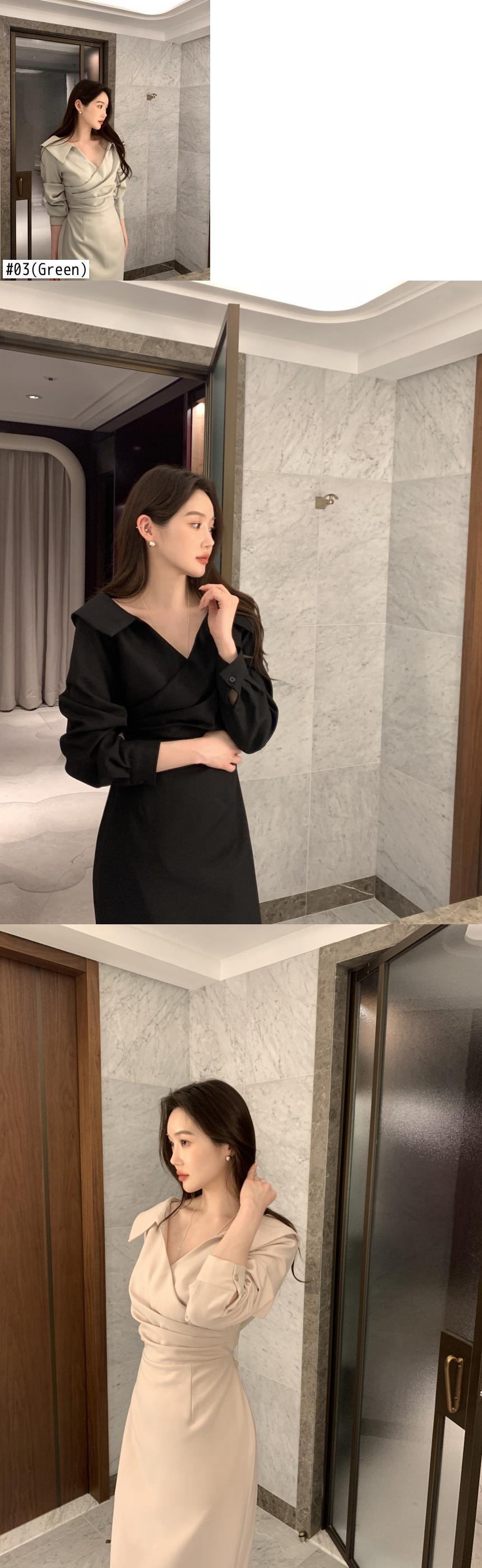 オフィスレディ ロングボディコンドレス Vestidos De 気質 レースアップラペル ウエストラップ バブルスリーブ シャツドレス レディース 会社 学校 通勤や通学にも