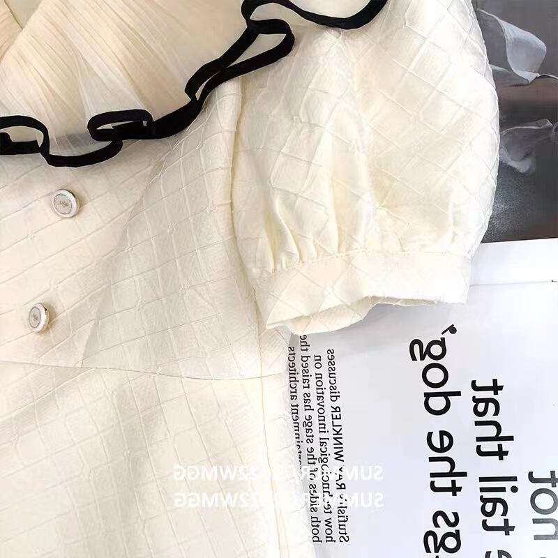 気質 半袖 シャツ セクシー ドールカラー クロップトップ フリル 3Dチェックシャツ サマーブラウス レディース ショート ハーフスリーブ 夏物