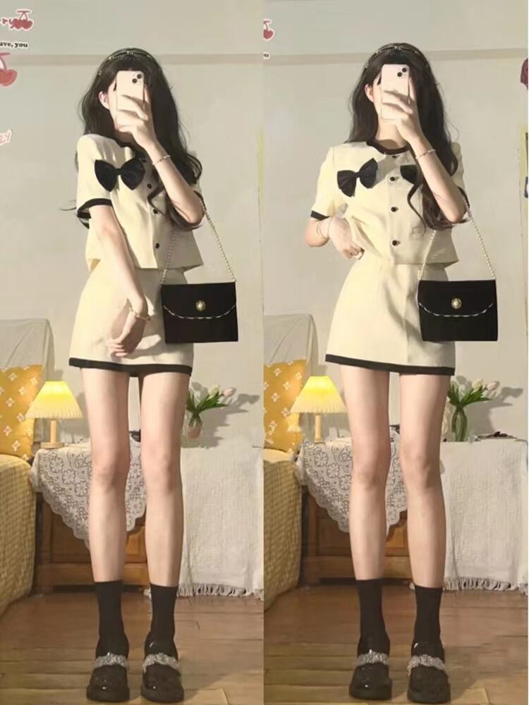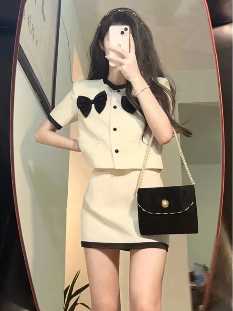 スカートセット気質スーツ夏クロップトップスクルーネック半袖シャツブレザー Femenino ボディコンミニブラウスファルダ ショート ハーフスリーブ サマー 夏物