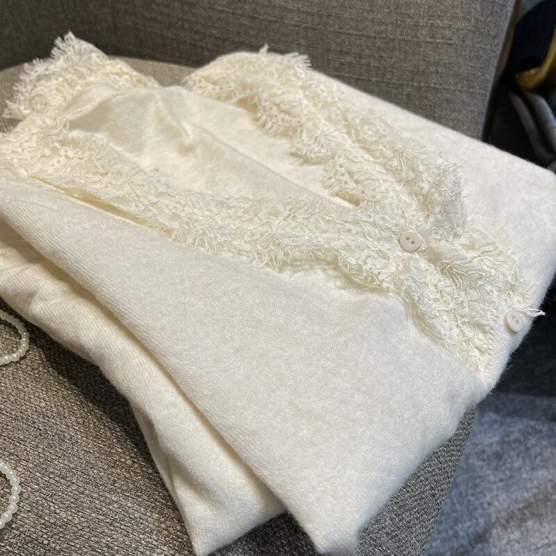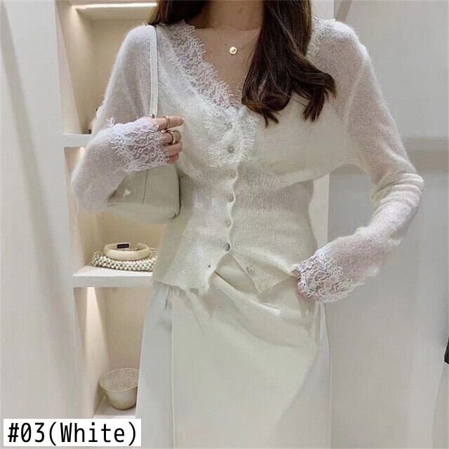 プルオーバー ニット セーター セーター V ネック ホワイト レース シャツ スリム ウエスト気質クロップド カーディガン セーター Vネック
