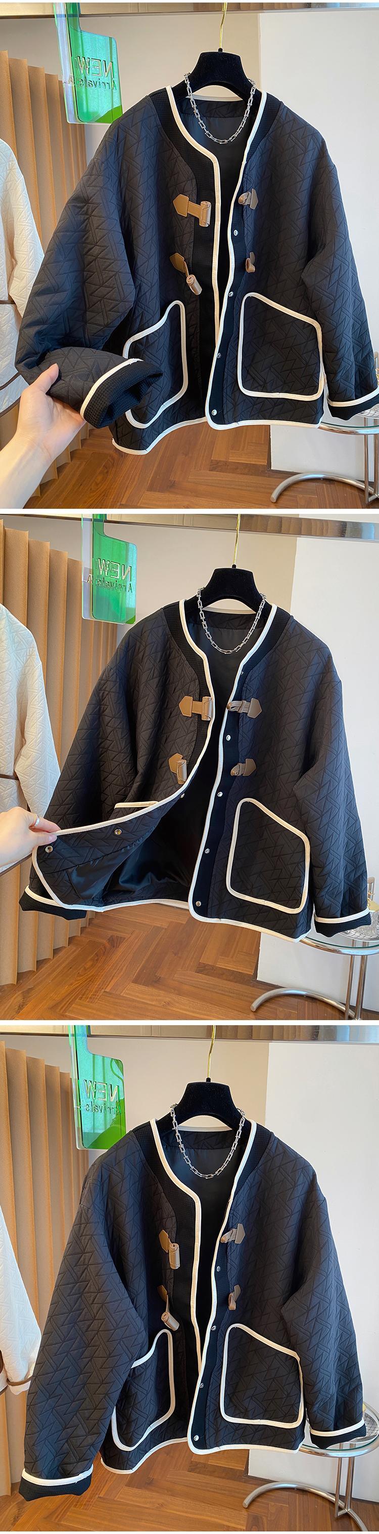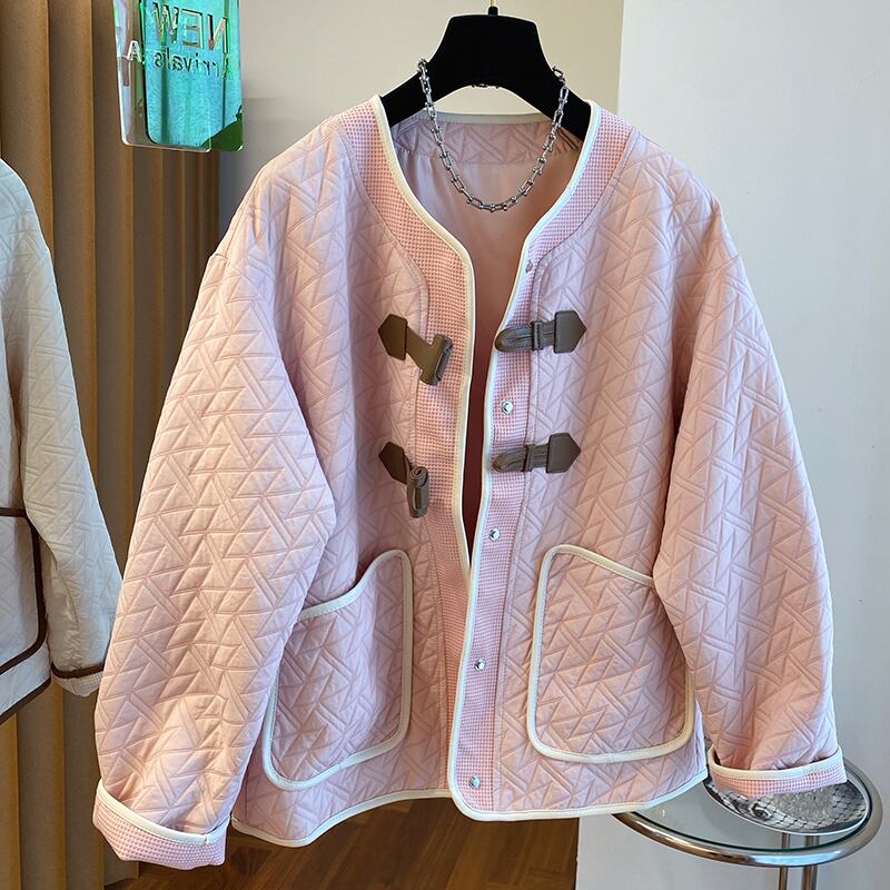 冬パーカールーズクルーホーンボタンコートスタイルアーガイルピンクチェック柄ジャケット冬服 Roupas s ウィンター 冬物