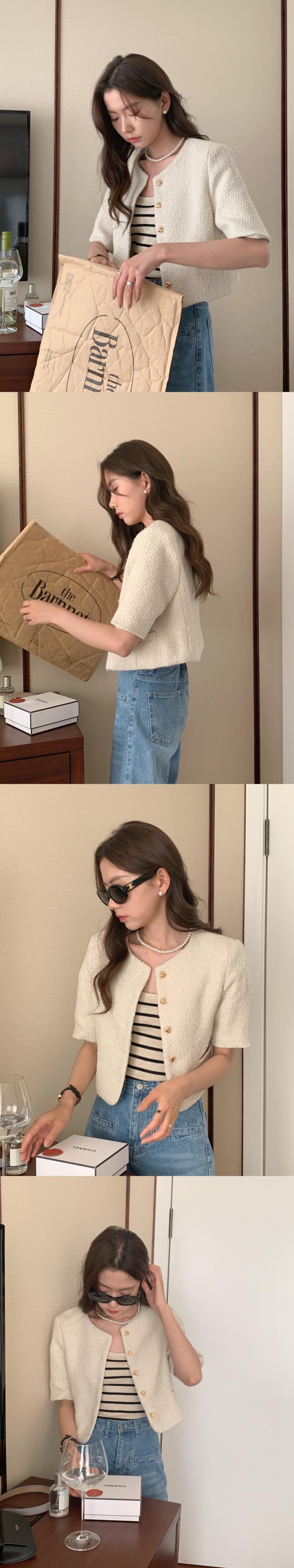 サマーカーディガン スモールフレグランス ラブボタン ツイードコート 半袖ジャケット Y2k気質 スーツ スリム ブラック テーラードコート トップス ショート レッド ハーフスリーブ 夏物