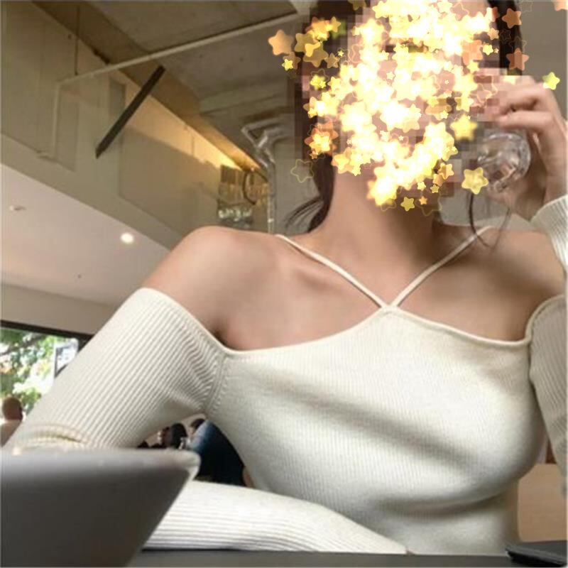 ショート ニット セーター黒セーター気質スリム ホルター トップス オフ ショルダー スラッシュ ジャンパー セーター ジャージー プルオーバー ブラック オフショルダー