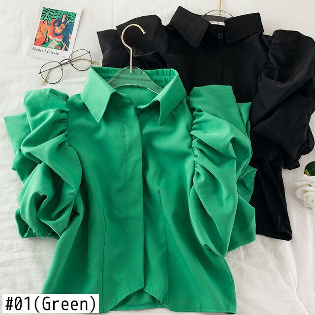 サマートップス シャツ レディース ランタン 半袖 ブラウス ブラック ホワイト Roupas s プリーツ フリル ショート ハーフスリーブ 夏物