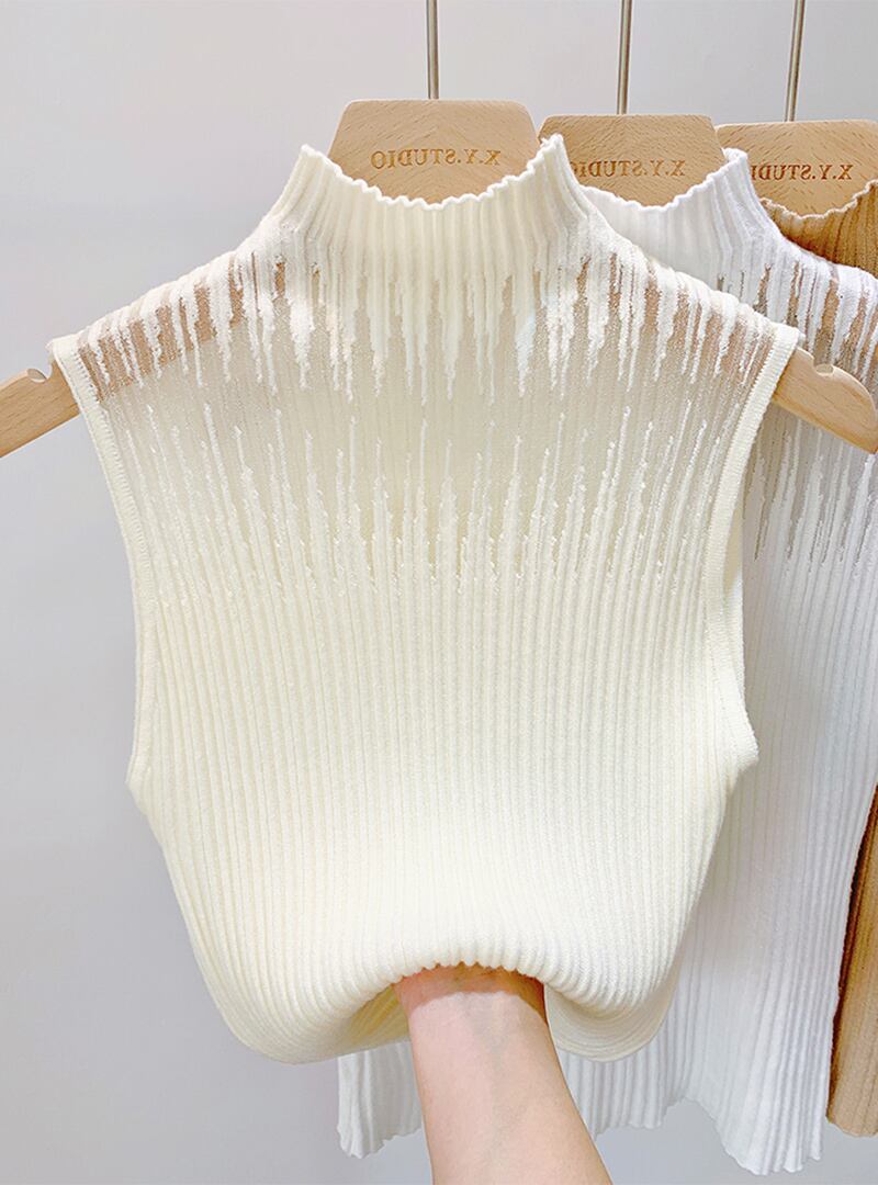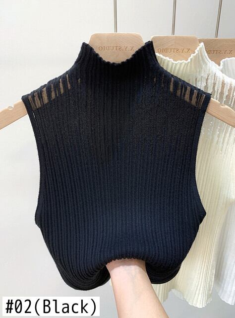 タンクセクシーキャミソールハーフカラー中空アウトノースリーブトップ夏シャツ白 Tシャツアイスニット ホワイト サマー 夏物 シルク