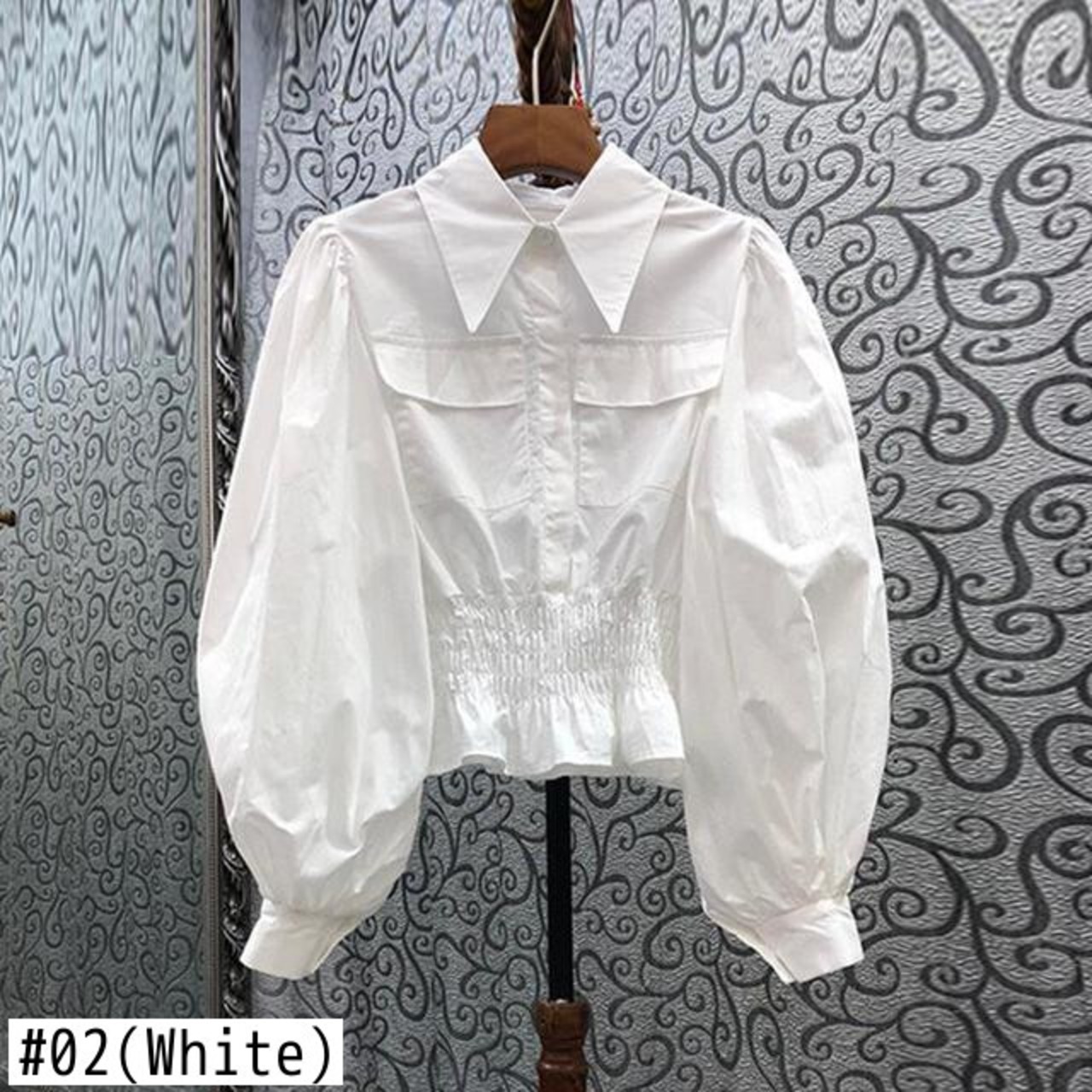 De Moda プリーツ ランタン スリーブ ホワイト シャツ レディース ブラウス ワイルド オータム トップス s ランタンスリーブ 秋物
