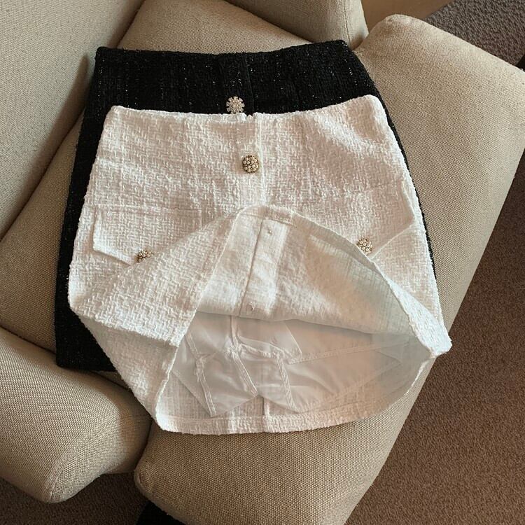 スカートボディコンミニ黒ツイードスカート段 Faldas モーダ春スリム A ラインチェック柄スカートセクシーストライプスーツ ブラック スプリング 春物 Aライン