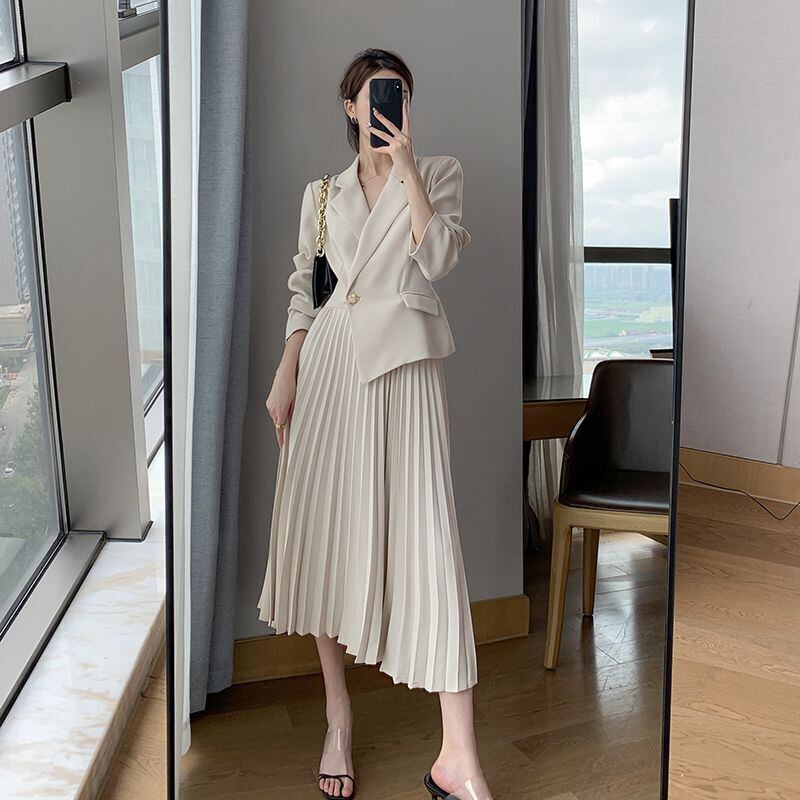 気質フェイクツーピースノッチカラースリムマキシドレスローブ Vestidos ボディコン誕生日ドレススーツプリーツドレスレディ